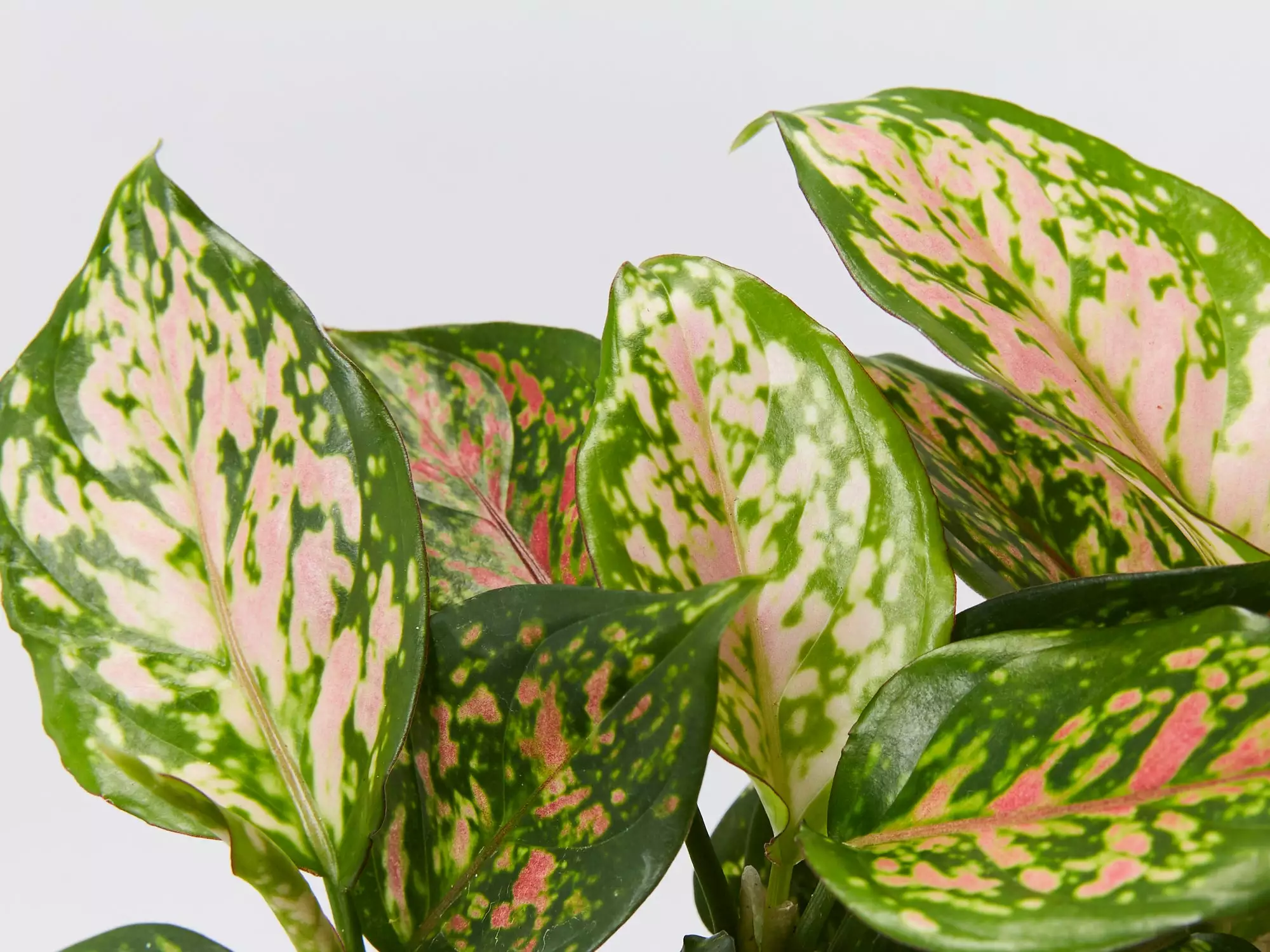 Aglaonema commutatum Red Valentine is a slow-growing Aglaonema cultivar, with variegated foliage he is simply irresistible. The Red Valentine bears appealing leaves with tones of rose-pink randomly splashed with dark green blotches. The midrib, margin and petiole are all dark green. Best foliage colour appears in indirect light and prefers soil to dry out between watering.Â