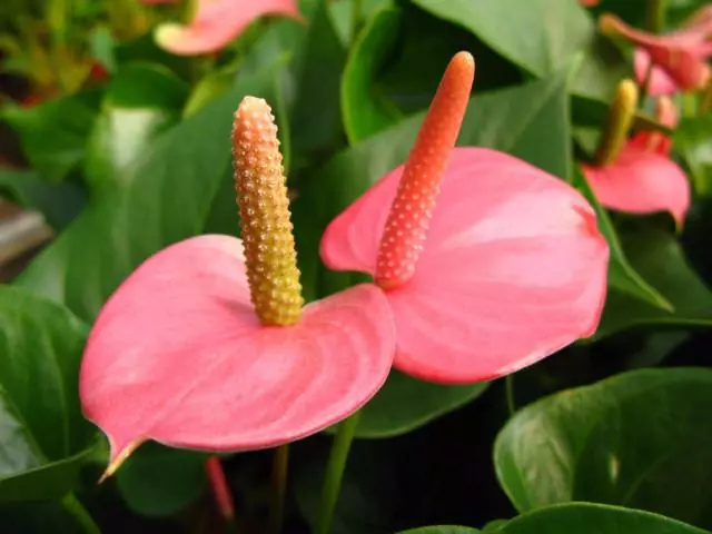 Anthurium andreanum ‘Sugar Love’ is one of the “Flamingo Flower” perennial plants. They are known for their broad, glossy arrow shaped leaves and their striking flowers or more correctly, spathes.Â