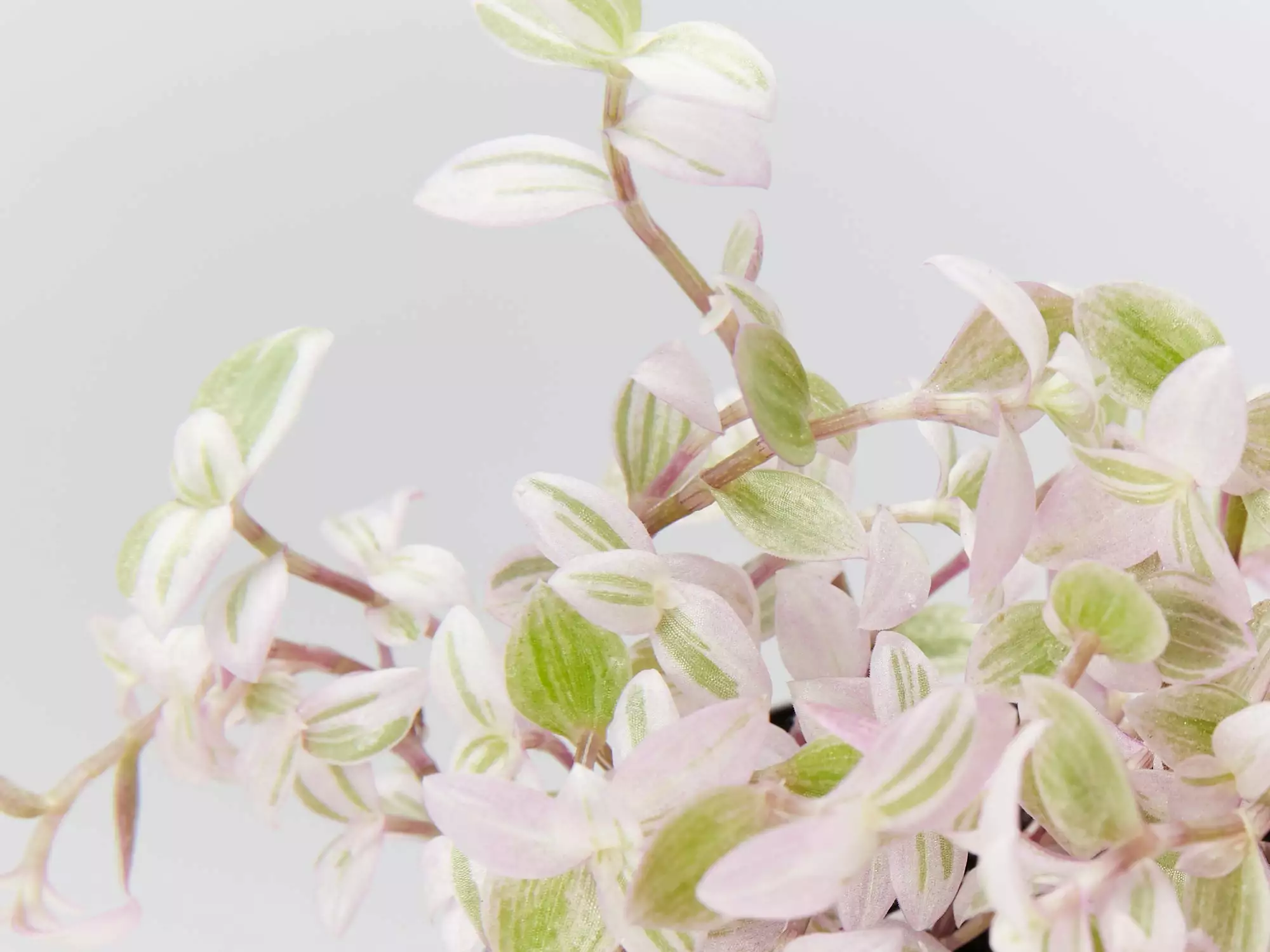 Callisia repens Pink Panther a mellow trailing indoor plant with little dainty waxy pink, green and white variegated leaves dotted along cascading stems. She is compact and trailing making her the cutest little addition to your home.