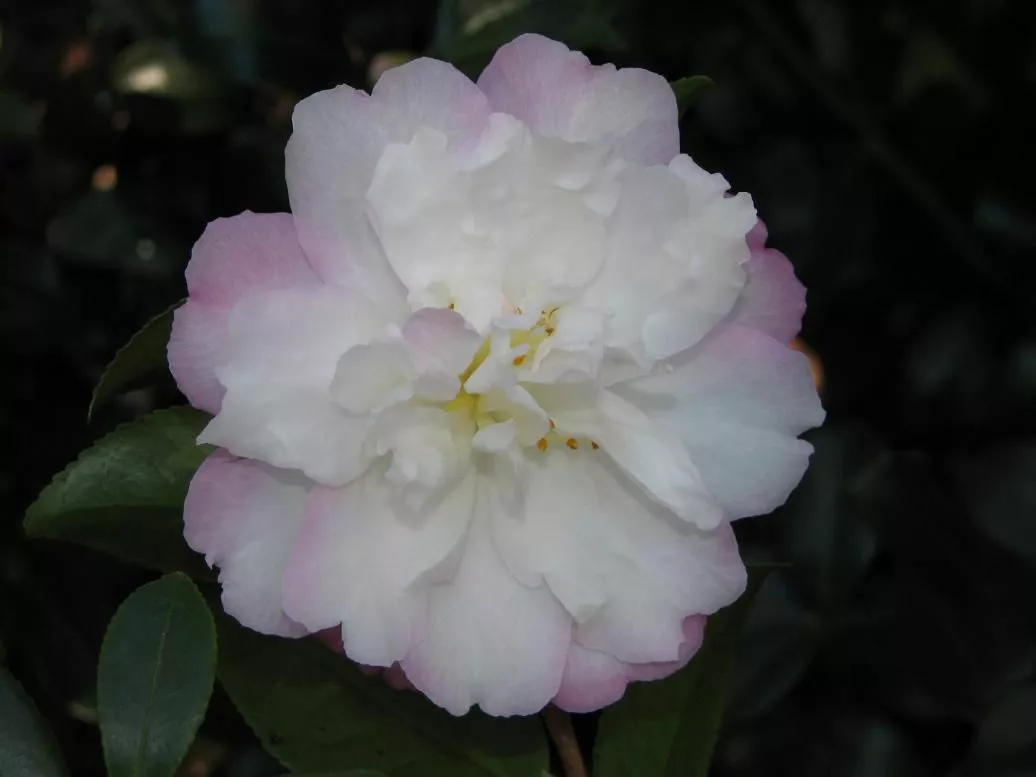 Camellia sasanqua Little Pearl has delicate soft rose pink buds that open to white petals.  A medium, dense evergreen shrub with small, bright green leaves and a strong, slender, upright growth habit.ÂÂ
