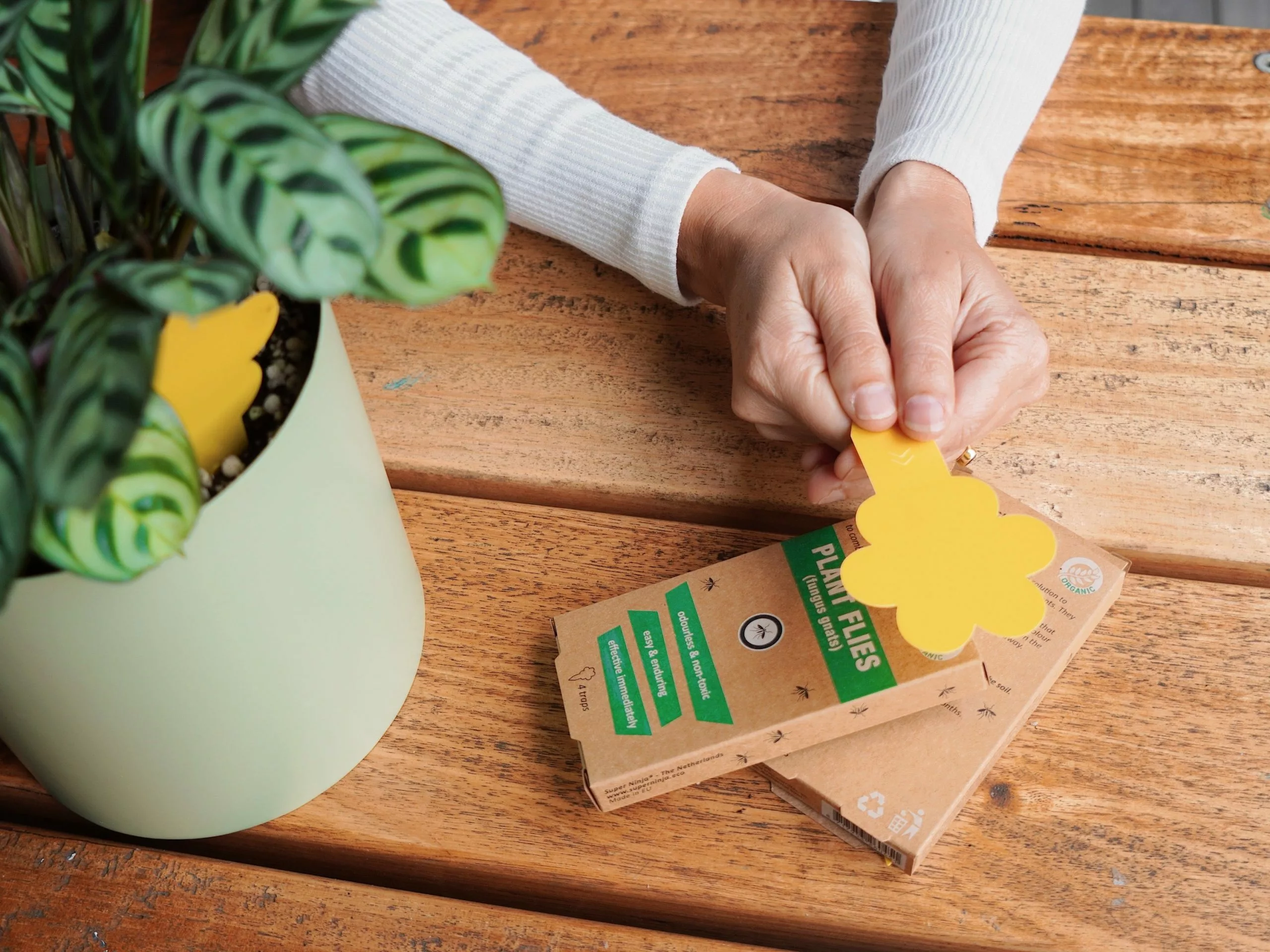 Meet your new security guards, “Plant Fly Ninjas”. It’s a 10 pack of sticky traps ideal for catching pesky fungal gnats. A green pest control alternative lasts for up to three months and is an effective and straightforward solution for catching flying pests. Pesky fungal gnats “get lost”.Â
