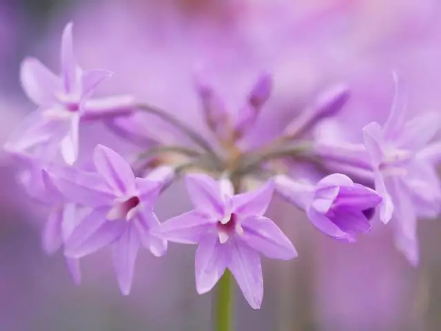 Tulbaghia cominsii x violacea Purple Eye has narrow grey-green leaves that form in upright clumps and produces small pink flowers with dark purple centres. When crushed the leaves have a strong garlic smell (hence the nickname Society Garlic). Purple Eye is a smaller more narrower version on the more common Tulbaghia violacea. This small plant is worth growing for the silver foliage and small flowers and does really well in a pot on sunny balcony.Â